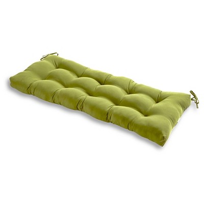 Enhance the look and feel of your outdoor bench or swing with this Kensington Garden 44 in. Outdoor Cushion. Its plush and durable construction makes it ideal for adding comfort to porch swings or outdoor benches. It comes with string ties to keep cushion in place, and features a circle tack construction to prevent fill from shifting. Each cushion is overstuffed for extra comfort and durability with 100% recycled, post-consumer plastic bottles, and covered with a UV resistant, 100% polyester outdoor fabric that resists fading. For best results, and to extend the life of your cushions store indoors or cover when not in use.