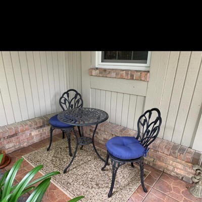 It’s difficult to find cushions for bistro chairs. They are smaller than regular outdoor chairs. I was so happy to see Target had the bistro cushions! The fit perfectly!