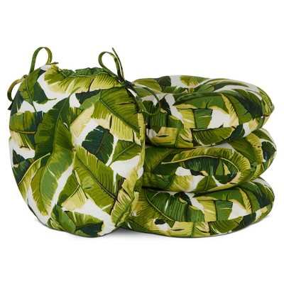 Kensington Garden 2pc 15"x15" Outdoor Seat Cushions Palm Leaves White: Tufted, Water-Resistant Patio Chair Pads with Ties