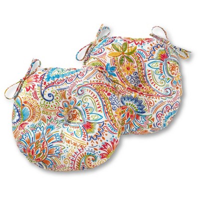 Kensington Garden 2pc 18" Round Outdoor Chair Cushions Marisol: Modern Floral Design, Reversible with Ties, Water-Resistant