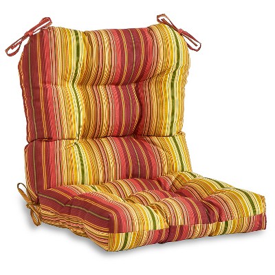 Kensington Garden 2pc 21"x21" Striped Outdoor Seat and Back Cushion Set Kinnabari: Water-Resistant, Tufted, Ties