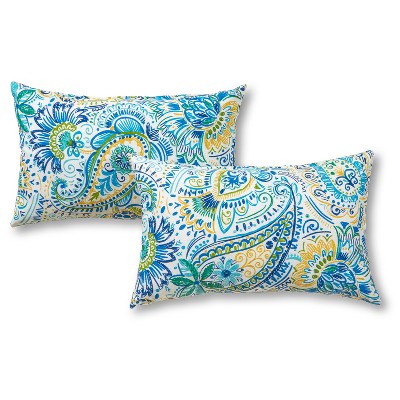 Kensington Garden 2pk 17"x17" Paisley Square Outdoor Throw Pillows Baltic: Weather-Resistant, Reversible Design