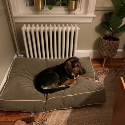 I'm very pleased with the dog bed - as is Briscoe. It's large enough for him to lounge and the cover is super sturdy. The only "downside" is that I can't find anywhere to order replacement covers so I have a clean one when the other goes into the wash.