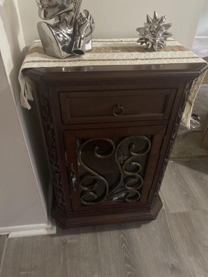 Kensington Hill Rustic Cherry Wood Accent Table 22 1/2" x 14 1/2" with Storage & Drawer Glass Door for Living Room Bedroom Bedside