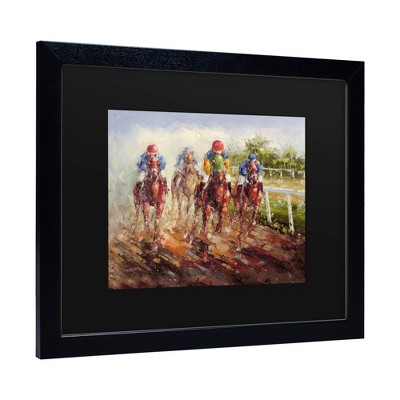 This ready to hang, gallery-wrapped art piece features a horse race at the Kentucky Derby.Prominent Colors: Tan, Brown, White, GreyMasters Fine Art is a company that travels around the world to bring the best in fine art from outstanding artists from different lands. They believe that art is the soul of the world, that it represents our human essence. MFA works mostly with Latin American art. It portrays a happy view of life, represented with bright, beautiful colors, music, dance, love, hope, and happiness, giving us the feeling that we can overcome all hardships with all the beautiful things we still have in life. The art that Masters Fine Art carries is many things: colorful, contemporary, sexy, emotional, musical, romantic, and above all it is beautiful and full of joy.The Outdoor Canvas Art by Trademark Fine Art is a great way to add a pop of color to your poolside, balcony, backyard, garden, or porch. This all-weather outdoor decor is printed with UV gel inks to prevent fading for years to come. These colorful outdoor pictures for the patio have been digitally reproduced, printed on all-weather artist canvas, stretched, and gallery wrapped on all-season stretcher bars for a clean finish.