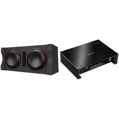 This bundle includes a Kenwood X503-1 eXcelon Class D Mono Power Amp, 500Wx1 @ 2 ohms and a Kenwood P-XW1221D Dual 12" Vented Enclosure, 600W RMS Power.