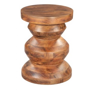 Kerala Side Table Walnut 21.3"H – Mango Wood Round Tabletop With Lacquered Finish By Zuo Modern