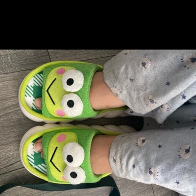 - CUSTOM DESIGN: Indulge in custom designed comfort with these women's Keroppi open-toed slide slippers. Featuring 3D art of Keroppi's face on green straps, each step is a playful journey into the world of this beloved character.