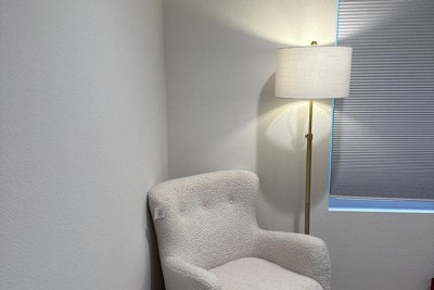 Got this chair as a gift from my baby registry and I couldn't be more pleased with it. It fits well in our nursery and is the perfect depth for nursing and pumping comfortably. The color is not pure white, which I'm happy with. Planning to buy 2 more for our master bedroom.