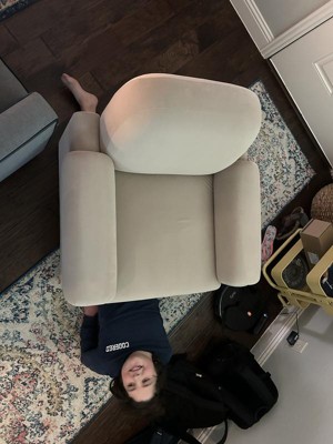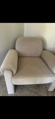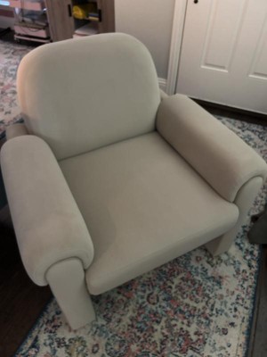 It’s a super cute occasional chair, the fabric changes color depending on the light in your room. Sometimes looks ivory, in darker light it almost looked “dirty”. I returned the chair because it needed to be one that could be used for watching a movie, etc. It wasn’t comfortable enough for that. We are also a tall family. If you are a small person, you might like it for extended seating times. Either way, it felt sturdy and well made. Just didnt meet our needs.