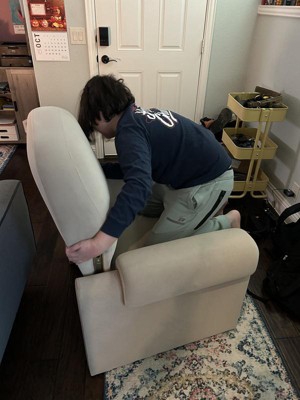 Comfortable chair but the material was fuzzy. Returned because thought it would get matted quickly