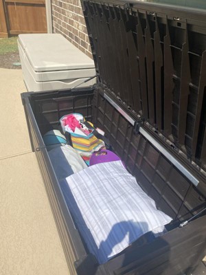 - SPACIOUS STORAGE: 120-gallon spacious outdoor bench provides storage and protection for large cushions, garden equipment, and pool supplies; Color: Espresso Brown