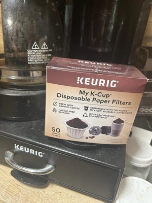 The Keurig My K-Cup Disposable Paper Filters (available in a 50-pack) is the only paper filter specially designed by Keurig to fit the My K-Cup Reusable Coffee Filter. Make cleanup even easier when using the My K-Cup Reusable Coffee Filter by adding the paper filter for extra filtering when brewing. Just lift out the paper filter when you’re done to dispose of your coffee grounds. Made of 100% wood pulp to eliminate any plastic waste, the My K-Cup Disposable Paper Filter is an extra layer to help keep coffee grounds from getting into your mug, to bring you the smoothest cup of coffee with any ground coffee you choose. To use, just open the lid of your Reusable Coffee Filter, place a Disposable Paper Filter inside, and fill with your choice of ground coffee. Close the lid securely, then place it into the pod holder of your Keurig coffee maker. Lower the handle on your brewer, select your brew size, and in moments you’ll be enjoying a delicious, fresh-brewed cup of coffee. The My K-Cup Disposable Paper Filter is easy to use, convenient, and an eco-friendly way to enjoy your favorite ground coffee with less mess.