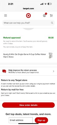 Hi item came broken talked with Target on Dec 16 and I have a screen copy of conversation of no need to return item a refund would be given never refunded me and the people that work in customer service really do not listen at all