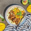 chicken in chicken broth cooked out as a result of the sous-vide process (boneless skinless chicken breast, water, vinegar, yeast extract, sea salt, cultured onion juice, black pepper, citrus extract), cilantro lime sauce (water, roasted poblano chilies, cilantro, high oleic sunflower oil, parsley, olive oil, dehydrated garlic, lime juice concentrate, jalapeno, sea salt, lemon juice concentrate, dehydrated roasted garlic, tapioca starch, spices, black pepper, xanthan gum, sunflower lecithin, monk fruit extract).