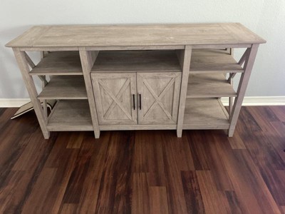 The Bush Furniture Key West Tall TV Stand with Storage is a perfect way to bring the feel of a coastal retreat right to your living room. Highlighted by its unique X pattern accents and an authentic Washed Gray finish with Aged Bronze hardware, this entertainment center is a natural fit in homes that embrace cottage and farmhouse styling. Get together for movie night or catch up on your favorite show around a media stand that supports up to a 65 inch television and/or 75 pounds. A center cubby space with a cable management cut out provides an ideal place to keep a DVD player or video game console. Organize movies, games and other entertainment essentials inside a 2 door cabinet with one shelf that can be raised or lowered to accommodate items of various sizes. Open storage areas on the right and left each feature two fixed shelves and one adjustable shelf for additional media or decorations. Use the 60W x 17D x 30H TV Stand on its own or add the matching Key West Coffee Table, End Tables and Console Table to create a complete living room furniture set (coordinating items sold separately). This 60 Inch TV Stand has been rigorously tested to meet Bush Furniture's standards for safety, performance and durability and is backed by a 1 Year Manufacturer's Warranty. Browse the full Key West Collection for home furnishings with easy going style.