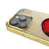 This gold, sparkly case with a microfiber interior is officially-licensed and MagSafe compatible. It provides fun and protection to your cell phone. Designed and decorated by Keyscaper in Tualatin, Oregon, USA., this case is exciting and durable. It has precise speaker and port cutouts, easy press buttons, and a raised lip around the screen and camera lens to provide extra protection against accidental bumps and scratches.