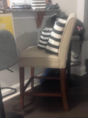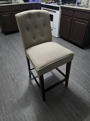 A: The barstool is upholstered with 100% polyester fabric.