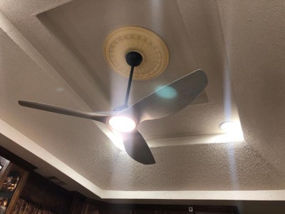 [This review was collected as part of a promotion.] This fan was easy for my husband to install in place of our old fan. The directions and wiring were very easy to follow. This fan circulates air much better than our old fan.It has a nice modern sleek design and looks beautiful in our living room. I love that the light has a dimmer built in the switch. the only con was that only one of the three mounting holes lined up on each blade but does not seem to effect performance. I would recommend this fan to anyone looking for a high quality effective fan.