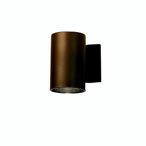 This one light, Wall Cylinder features our Architectural Bronze finish and uses a BR-30 bulb that produces 65-watts (max.) of pure light. It measures 7in. high, is U.L. listed for wet location, and is a Dark Skies compliant fixture. Back Plate Height: 4.50 Back Plate Width: 4.88 Material: Aluminum, Finish Color: Architectural Bronze, Width: 4.75", Height: 7", Depth: 7", Height From Outlet Box: 4.88", Backplate Width: 4.88", Backplate Length: 4.5", Lamping Type: Incandescent, Number Of Bulbs: 1, Wattage: 65 Watts, Dimmable: No, Moisture Rating: Wet Rated