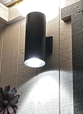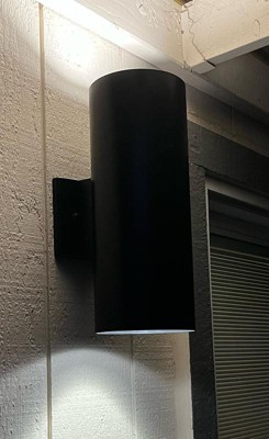 [This review was collected as part of a promotion.] I placed the Cylinder 15" Light Wall Light Black outside of our house, so it would light up the sidewalk at night. I like the style of the up and down lighting. It looks very upscale looking. It was very easy to install and the instructions were very straightforward. This light is high quality and feels like it is made with the best craftsmanship. This lights is stunning and I would highly recommend.
