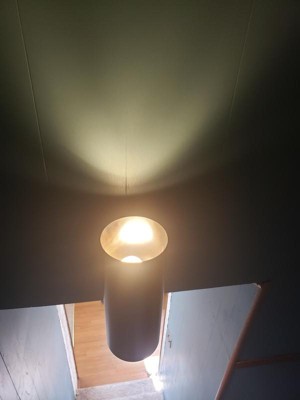 [This review was collected as part of a promotion.] This cylinder light is perfect for what we had in mind. We installed it inside on our long hallway. We needed something very simple with a modern and clean look. And this is it. Very well made and easy to install. We are very pleased with this.