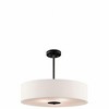 The clean lines and simple styling make this versatile 3 light semi flush ceiling fixture or pendant distinctive. Featuring a White Microfiber shade and a Satin Etched Glass diffuser, this design can complement any space. Chain Length: 36.00 Shade Dimensions: 20.00 x 5.00 Material: Steel, Finish Color: Olde Bronze, Width: 20", Height: 5.5", Chain Length: 36", Lamping Type: Incandescent, Number Of Bulbs: 3, Wattage: 100 Watts, Dimmable: No, Moisture Rating: Dry Rated