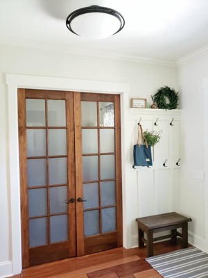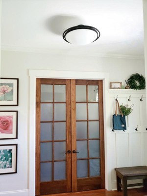 This larger scale semiflush style is form meets function at its finest. It casts a glow through a room while also providing a textural element to a ceiling space with its soft white globe and contrasting black finish frame. A frosted glass dome casts an soft but illuminating glow. Takes (4) 100W max Type A bulbs (not included) The black finish of the frame provides a contrast against the white glass dome creating a beautifully modern style Perfect for a mudroom, hallway or secondary entryway to make a subtle statement. The curve of the frosted glass adds a softness that complements its sleek modern profile. Coordinates with black hardware, furniture or accessories. Complements light character marble and tones such as creams, oatmeals, sand and sage. To clean, wipe clean with a damp cloth. One (1) year from the date of purchase, visit www.kichler.com/indoorwarranty for more details CSA UL Listed Dry Fixture and mounting hardware. Bulbs not included.