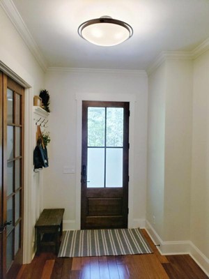 [This review was collected as part of a promotion.] The light fixture is in my hall way and looks great. The fixture is a semi flush style that was easy to install, I was able to do the installation myself. The fixture has been easy to clean and I’ve only noticed a minimal amount of dust.