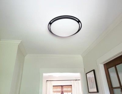 [This review was collected as part of a promotion.] I don't have real tall ceilings, but I needed something for my entry way....the Kichler Black Semi-Flush Mount Light was perfect for that! It was easy to install...did it all on my own. It looks fantastic too! I drops just enough to make a statement, but then also doesn't make the ceiling seem low. The lamination is great, giving off plenty of light, and I'm quite partial to the black. It suits my home perfectly!