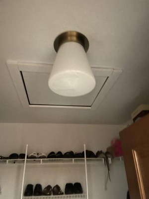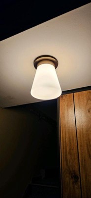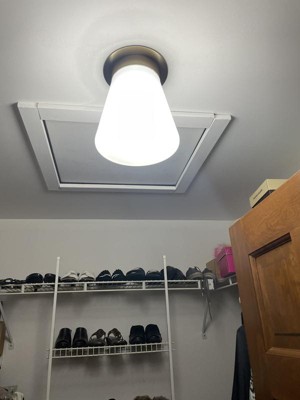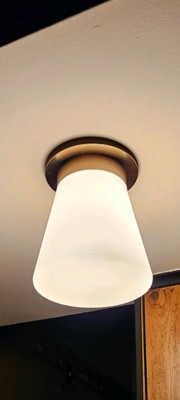 The Albers 1 light flush mount illuminates on its own or in multiples. Its refined black finish complements many design styles. It comes with a tapered opal glass shade. Material: Steel, Finish Color: Champagne Bronze, Width: 8.5", Height: 10", Length: 8.5", Lamping Type: Incandescent, Number Of Bulbs: 1, Wattage: 75 Watts, Dimmable: Yes,
