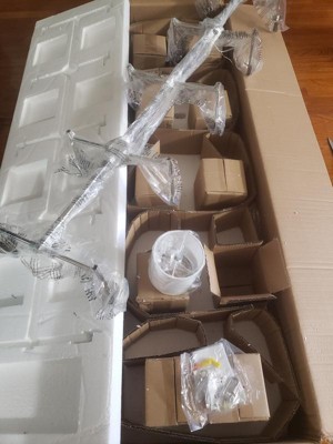 [This review was collected as part of a promotion.] This 10 light indoor linear chandelier was delivered in pristine condition. It features a stunning polished nickel finish fabric white clean shades. I bought the soft white bulbs and the whole chandelier gives my dining room the perfect touch. I love how versatile it is as the steel body can fit on a sloped ceiling. The stems are adjustable to hang at the perfect height. It truly can fit in any room making it more aesthetically pleasing. My family has been complimenting how well it fits over my dining room table. I am so happy this stunning chandelier makes my house feel more at home while giving a classic, soft lighting impression.