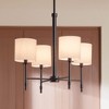 [This review was collected as part of a promotion.] The Ali 20" 4 Light Chandelier provides a stylish design with a touch of elegance. Whether your style is modern or traditional, this will fit right in. The white fabric lamp shades look great with the black frame and it fits in perfectly with my decor. The installation took about 20 minutes and was straightforward with the assemby instructions. I like that this chandelier includes multiple stems so you can extend to varying lengths as needed. Four candelabra bulbs, not included, are needed for this piece. I opted for vintage bulbs, but you can go as bright as you like, which would also help give it a more modern look. The quality of this chandelier is top notch, as always with Kichler products, and I love the new look of my side entryway.