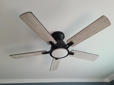 [This review was collected as part of a promotion.] This is a beautiful ceiling fan, All the pieces are of good weight and sturdy. My husband, who is an electrician installed it in about 40 minutes including the switch. It was installed in the center of the kitchen without the downrod and the ceiling is 7.5 feet. The fan provides plenty of air circulation on all three speeds and there was no wobbling even on the highest setting and it is completely quiet. It was easy to reverse the direction of the fan through the included wall switch. When installed without the downrod the distance between the ceiling and the blades was 9" and from the ceiling to the bottom of the light was 10.5". I love the two different sides of the fan blades, each gives your room a different look. The light is bright however, the fan motor assembly completely surrounds the light so you get a downward light instead of an all around light. The middle of my kitchen down to the floor was lit up nicely but from the middle to the ceiling was somewhat dark, the kind of dark you get when you have two bulbs in a light fixture and one bulb dies. If I had a higher ceiling I would not have had this problem so it isn't a problem with the ceiling fan. We will be adding recessed lights and keep this ceiling fan up because I love it. The light is dimmable simply by holding down the light button on the wall switch, it gradually goes from brightest down to just a glow.