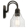 Create a masterpiece with this 2 light bath light from the Avery collection with Clear Seeded glass. Back Plate Width: 5.00 Material: Steel, Finish Color: Olde Bronze, Width: 14.75", Height: 9.25", Depth: 8", Height From Outlet Box: 4", Backplate Width: 5", Lamping Type: Incandescent, Number Of Bulbs: 2, Wattage: 75 Watts, Dimmable: No, Moisture Rating: Damp Rated