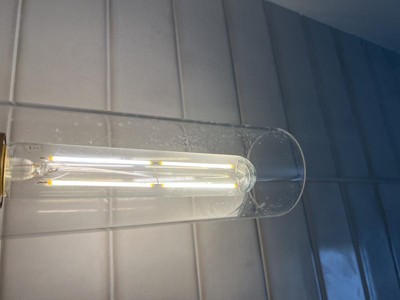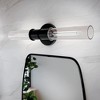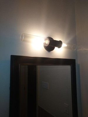 Collection: Aviv, Material: Steel, Finish Color: Black, Width: 5.5", Height: 24", Depth: 4.25", Height From Outlet Box: 2.75", Backplate Width: 5.5", Lamping Type: Incandescent, Number Of Bulbs: 2, Wattage: 60 Watts, Moisture Rating: Damp Rated, Desc: With cylindrical clear glass shades, the Aviv wall sconce conveys a sleek style. A stunning black finish makes Aviv a versatile and timeless accent. Remove its glass for easy cleaning.,