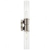 Collection: Aviv, Material: Steel, Finish Color: Brushed Nickel, Width: 5.5", Height: 24", Depth: 4.25", Height From Outlet Box: 2.75", Backplate Width: 5.5", Lamping Type: Incandescent, Number Of Bulbs: 2, Wattage: 60 Watts, Moisture Rating: Damp Rated, Desc: With cylindrical clear glass shades, the Aviv wall sconce conveys a sleek style. A stunning black finish makes Aviv a versatile and timeless accent. Remove its glass for easy cleaning.,