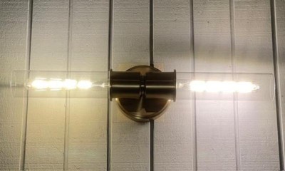 [This review was collected as part of a promotion.] I changed out a dated light fixture over a small bathroom vanity with this beautiful wall sconce and couldn't be happier. It's sleek and cool and lights up the room perfectly. I love that it's a simple yet modern design with a clasic nickel base. It really would look great anywhere in my house.