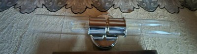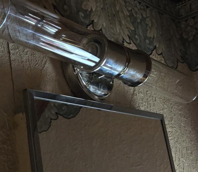 [This review was collected as part of a promotion.] This wall sconce is absolutely beautiful! I love the polished nickel. We needed a light in our stairway. It was so dark there. This light fixture has added a touch of class to the stairway. It is 24 inches across, so it makes a statement. The clear glass is nice and thick. You can instantly tell this is a high-quality fixture. Installation was a breeze. It was hard to get a great picture because of the placement. It is much more beautiful than what my photo shows.
