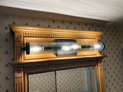 [This review was collected as part of a promotion.] I needed a replacement light fixture for my bathroom vanity that would fit horizontally and not interfere with the vanity doors. This fixture fits well was easy to install. I’m not very I have the right bulbs, I used candelabra bulbs, they barely fit and touching each other and are not bright enough for a bathroom. I will have to try another style. I would prefer if the glass bulb cover was opaque rather than clear. I do like the look of the fixture.