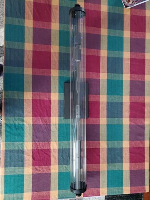 [This review was collected as part of a promotion.] This light is perfect for my small windowless bathroom. It is beautifully made and is sleek and simple. It has 5 lightbulbs inside making it nice and bright. I love that has a clear but textured tube that lets an abundance of light out. It has a black finish that goes with almost anything. It was easy to install and the directions were si.ple to understand. I am very pleased with how this has updated the look of my bathroom.