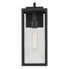 The Branner outdoor wall light brings a hint of cosmopolitan to your home's exterior. Its strong form in textured black sets the stage for the unique T-shape bulb. Its thicker clear glass panes are both sturdy and stylish. Material: Aluminum, Finish Color: Textured Black, Width: 7", Height: 17.75", Depth: 8", Height From Outlet Box: 3.75", Backplate Width: 6", Backplate Length: 5", Lamping Type: Incandescent, Number Of Bulbs: 1, Wattage: 60 Watts, Moisture Rating: Wet Rated