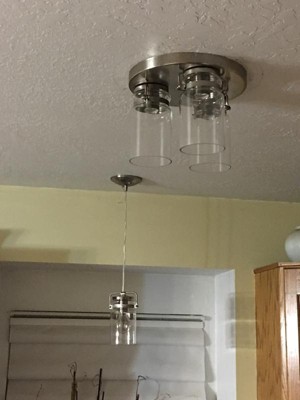 [This review was collected as part of a promotion.] This was pretty straightforward to put together and install with the exception for a single person installing the glass jars**. For my installation I placed it where a recessed light was, so once the retrofit bracket i purchased was installed it was pretty easy to install the hardware because i was able to simplify the installation by pre wiring it to the male end of a screw in socket (because the socket for the light bulb is inside the recess light can). So all i needed to do was wire it all up to a male socket on the table i was working on, then screw that socket in the recess can (no wiring above my head Yeah!!), mount the bracket, ground it, screw in the final mount and flip the switch! ** Its a pain in the rump for one person to put the glass jars on after it was mounted to the ceiling, it is not easy but it can be done (i did it but was afraid of a jar slipping and falling down in the process). to make it easier for yourself find someone to help you for 3-5 minutes to hold the jar/s while the other one mounts it with the bracket. This provides much more light than our previous recess light, in fact so much i may get a dimmer switch. I will probably in the near future replace the CFL's i have for LED Edison bulbs similar to the stock advertised picture. This product was provided to me for my honest and unbiased feedback