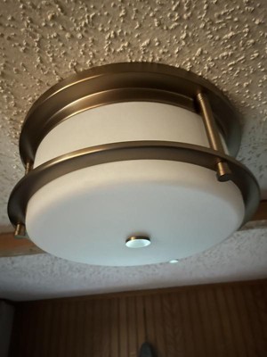 [This review was collected as part of a promotion.] We installed this light in a storage area, opposite of our laundry area, where we put the 18” one. This 12” fixture gives plenty of light for the area it is in. Easy to clean and with it being a flush mount we don’t have to worry about cleaning out bugs. Good quality with heavy duty glass. Pretty design with the champagne bronze color. Easy to install. Would recommend!