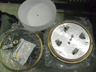 [This review was collected as part of a promotion.] I recieved thos 4 light fixture to use and review. It is a pretty big size. I like that it has a god ring thing that goes around it to make it look fancy. It has frosted glass . Its eazy to install. Love it