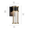 The Camillo LED outdoor wall light is modern and refined. Its vertical louvers encase clear seeded glass, giving it a dimension that makes you look twice. Dual finishing in textured black and natural brass enhances your outdoor space. Material: Aluminum, Finish Color: Textured Black, Width: 4.75", Height: 12", Depth: 5.5", Height From Outlet Box: 3.75", Backplate Width: 6.5", Backplate Length: 5.5", Lamping Type: LED, Number Of Bulbs: 1, Wattage: 18 Watts, Cri: 92, Color Temperature: 3000 Kelvin, Lumens: 688, Dimmable: Yes, Moisture Rating: Wet Rated
