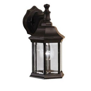 The Chesapeake(TM) Collection features a line of outdoor fixtures that embody America's coastal communities. Featuring a lantern-like shape, each piece is formed from die-cast aluminum by the finest craftsmen in the industry, providing the quality Kichler is synonymous for. This 12.5in. high outdoor 1-light wall lantern is the perfect way to update your home's profile while adding a classic touch. It includes our Black finish with clear glass panels, uses a 100-watt (max.) bulb, and is U.L. listed for wet locations. Back Plate Height: 4.63 Back Plate Width: 5.00
