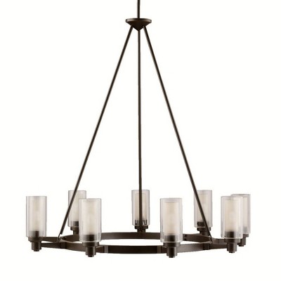 Circolo 27" 8 Light Oval Chandelier with Clear Outer and Satin Etched Inner Cylinders Brushed Nickel