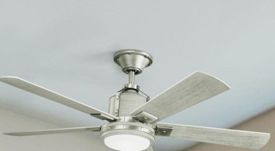 [This review was collected as part of a promotion.] I recently decided to change my color theme in my living room space to gray and silver. I needed to get a new ceiling fan to match, and this one matches perfectly. I installed it myself. It didn't take long. I really like the light switch it comes with. You can adjust your fan settings or cut your light on and off with just the push of a button. There is no need for a string to pull. This fan does sit a little lower than my previous fan, but I still love it. This fan matches my living room nicely and works wonderfully. The light is very bright. I am happy with this Colerne™ LED 52" Fan Brushed Nickel Ceiling Fan. I recommend this product.