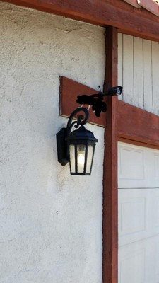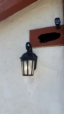 Uncluttered and traditional, this 1 light outdoor wall lantern from the Courtyard(TM) collection adds the warmth of a secluded terrace to any patio or porch. Featuring Clear Seedy Glass, this design will elevate and enhance any space. Back Plate Height: 10.70 Back Plate Width: 5.92 Material: Aluminum, Finish Color: Textured Black, Width: 8.25", Height: 17.75", Depth: 11", Height From Outlet Box: 7.8", Backplate Width: 5.92", Backplate Length: 10.7", Lamping Type: Incandescent, Number Of Bulbs: 1, Wattage: 150 Watts, Dimmable: No, Moisture Rating: Wet Rated